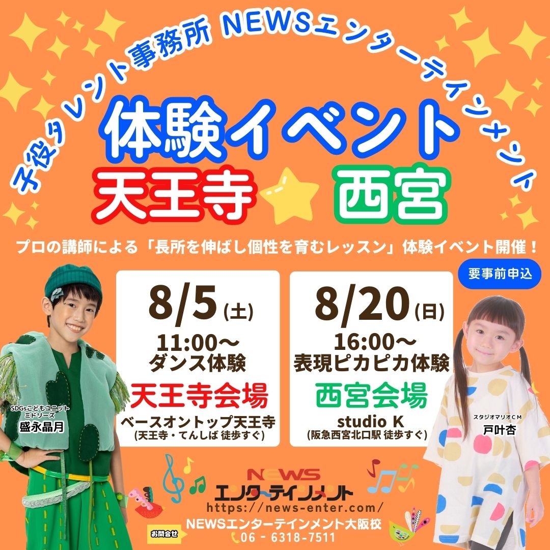 芸能活動に興味がある方はもちろん「夏休み新しいことにチャレンジしてみたい!」という方もぜひこの機会にご参加ください⭐⭐⭐