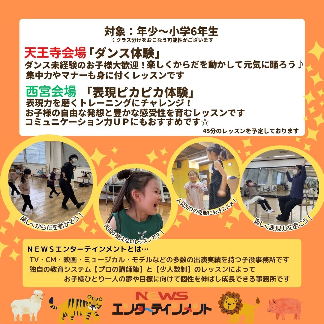 NEWSエンターテインメントのプロの講師による「長所を伸ばし個性を育むレッスン」を体験してみませんか?