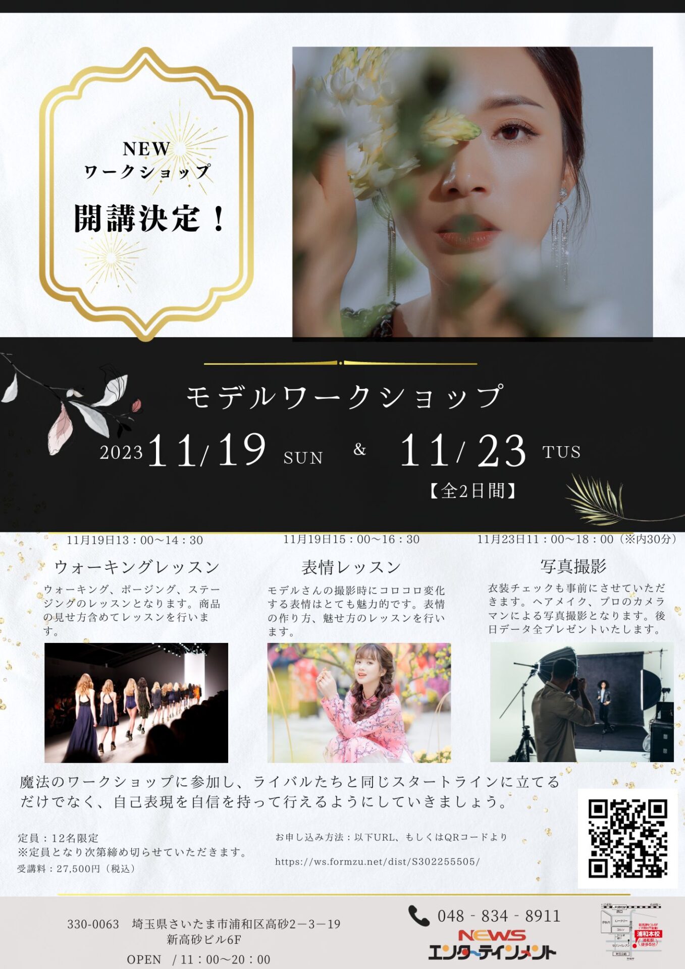 ウォーキングレッスン、表情レッスン、写真撮影(※全データプレゼント)