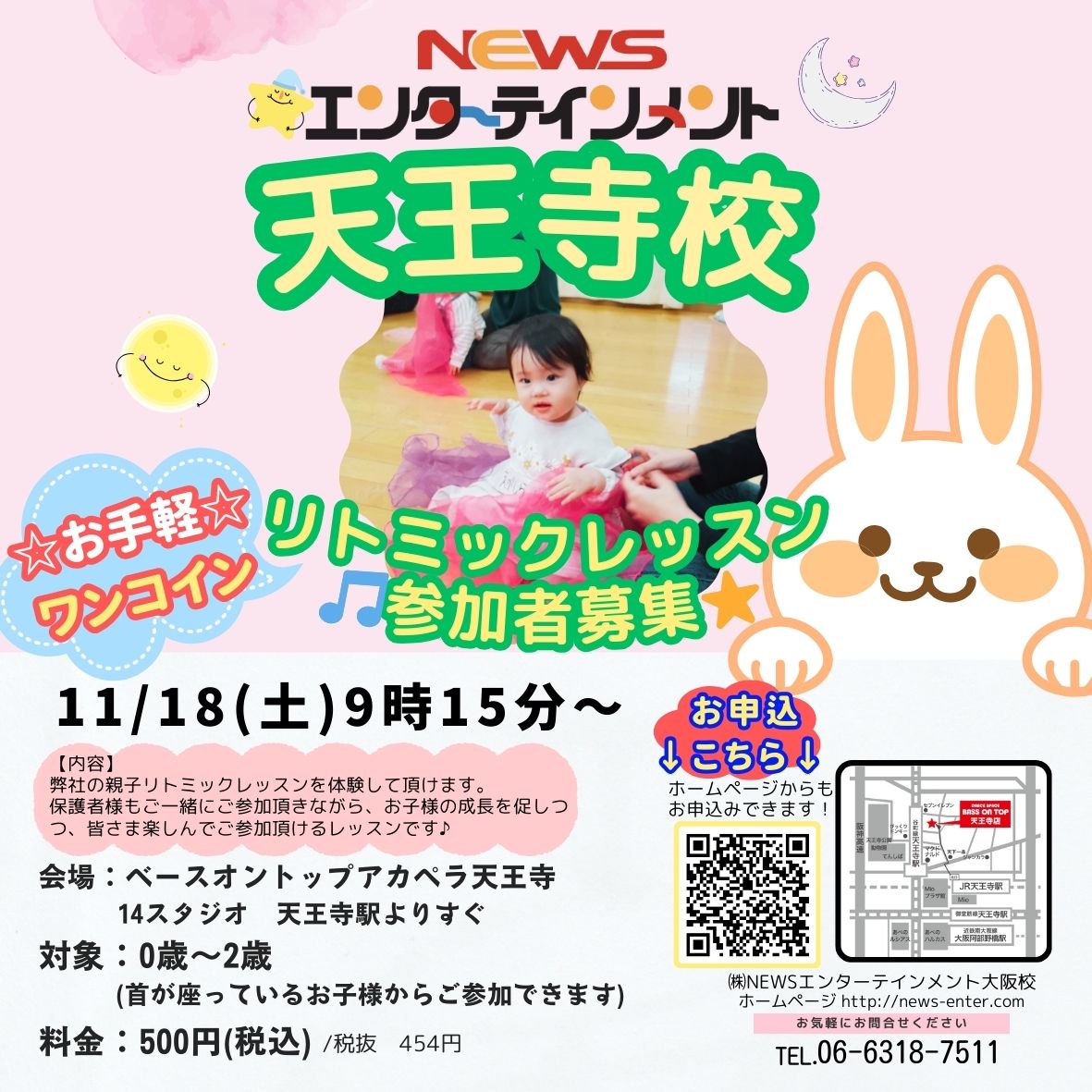 ✩.*˚今回、【11月18日(土)】に天王寺校で、弊社にご所属頂いていなくてもご参加して頂けるレッスンを実施致します!!